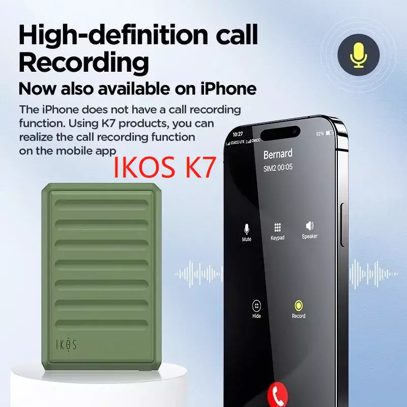 5: Telefon görüşmelerini kayıt altına almak isteyen kişiler için uygundur. Günümüz işletim sistemlerinde ister iOS olsun ister Android olsun yazılımlar görüşmelerin kayıt yapılmasına izin vermemektedir, ikos k7 ile yaptığınız görüşmeleri baştan sona ses kaydı şeklinde kaydedip saklayabilirsiniz.